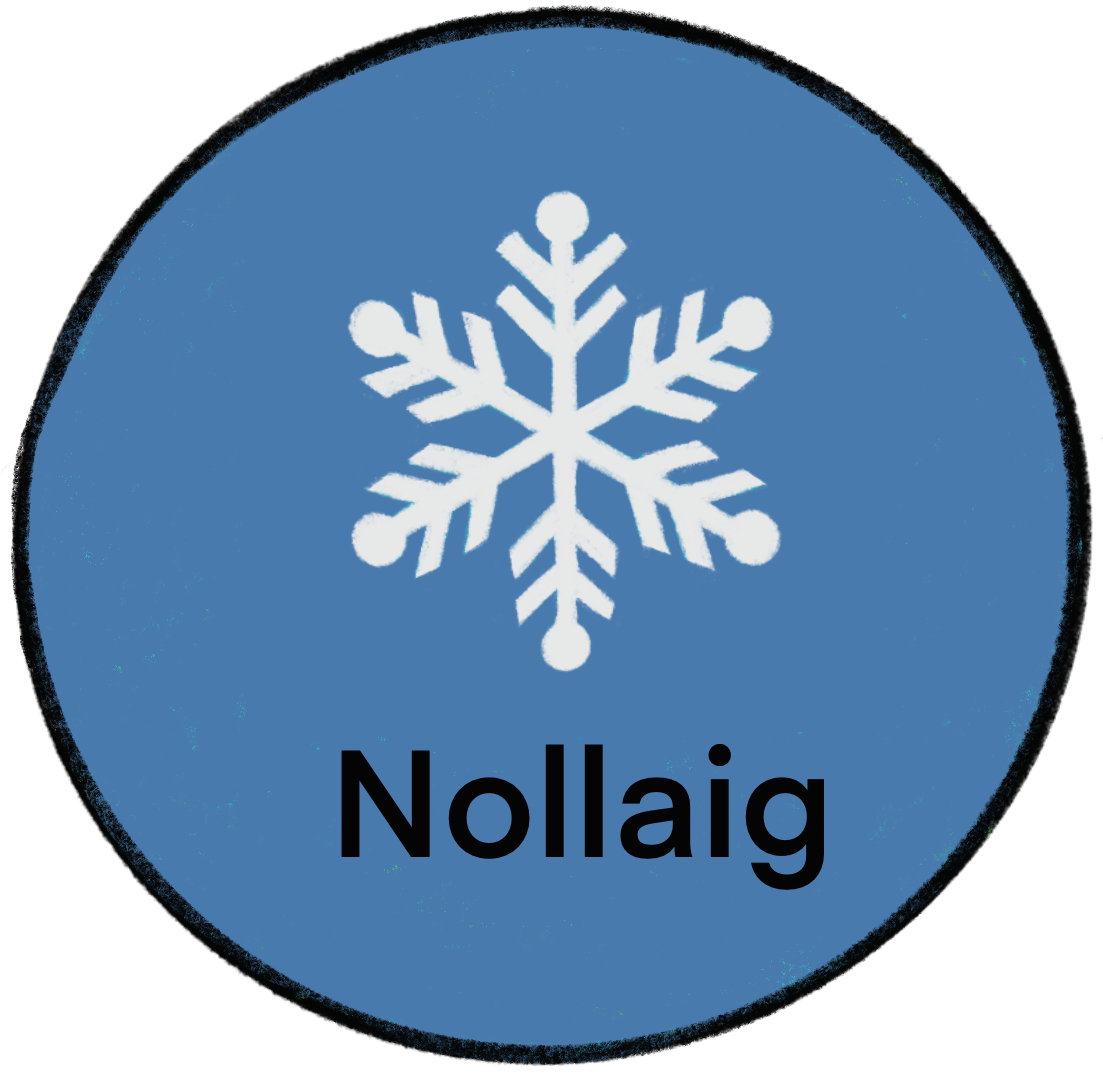 | 11 | Scéal na Nollag (scéalta le pictiúir) Muire agus Iósaf ar a mbealach go Beithil Muire agus Iósaf gan lóistín i mBeithil Rugadh Iosa i stábla An t-aingeal ag fógairt na dea-nuachta do na haoirí Na haoirí ag an stábla Réalta san Oirthear Na trí Ríthe sa stábla Pictiúir le dathú (pdf) Daidí na Nollag Crann Nollag Íosa sa stábla Cuileann |