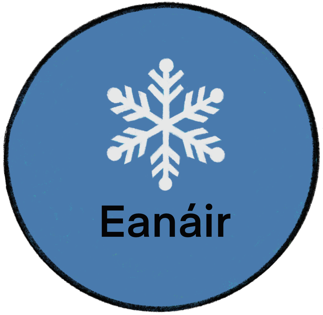 | Mí Eanáir | 9 | Saintréithe an Gheimhridh (2023 amháin) Na Séasúir An Geimhreadh Fad an lae agus teoachtaí níos ísle Crainn sa gheimhreadh Éin sa gheimhreadh Bláthanna sa gheimhreadh Ainmhithe sa gheimhreadh (Crainn, éin, bláthanna, ainmhithe agus mionainmhithe idirghníomhach le hábhair atá ar an suíomh faoi na teidil céanna) Amuigh faoin Spéir: Seicliosta an Gheimhridh |